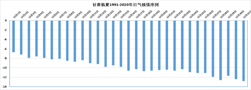据了解,临夏州地处甘肃省中部西南面,与青海省海东市毗邻,属于温带半干旱气候,历史上12月和1月的气象灾害以低温冷冻和雪灾为主,常年12月下旬的平均气温为-5.8℃、平均最高气温为2.7℃、平均最低气温为-11.6℃,历史极端最低气温为-24.7℃,出现在1991年12月28日;常年12月下旬的降水量有0.6毫米,历史日最大降水量则为2.9毫米,出现在1991年12月26日。