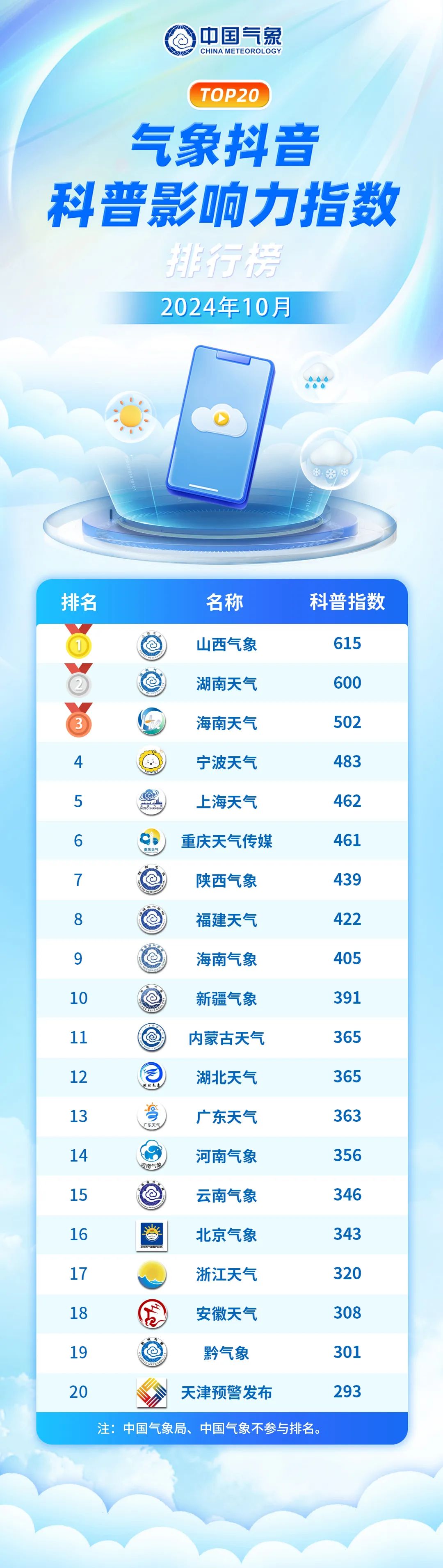 气象抖音2024年10月科普影响力指数 来源:中国气象报社 日期:2024年11月18日10:48