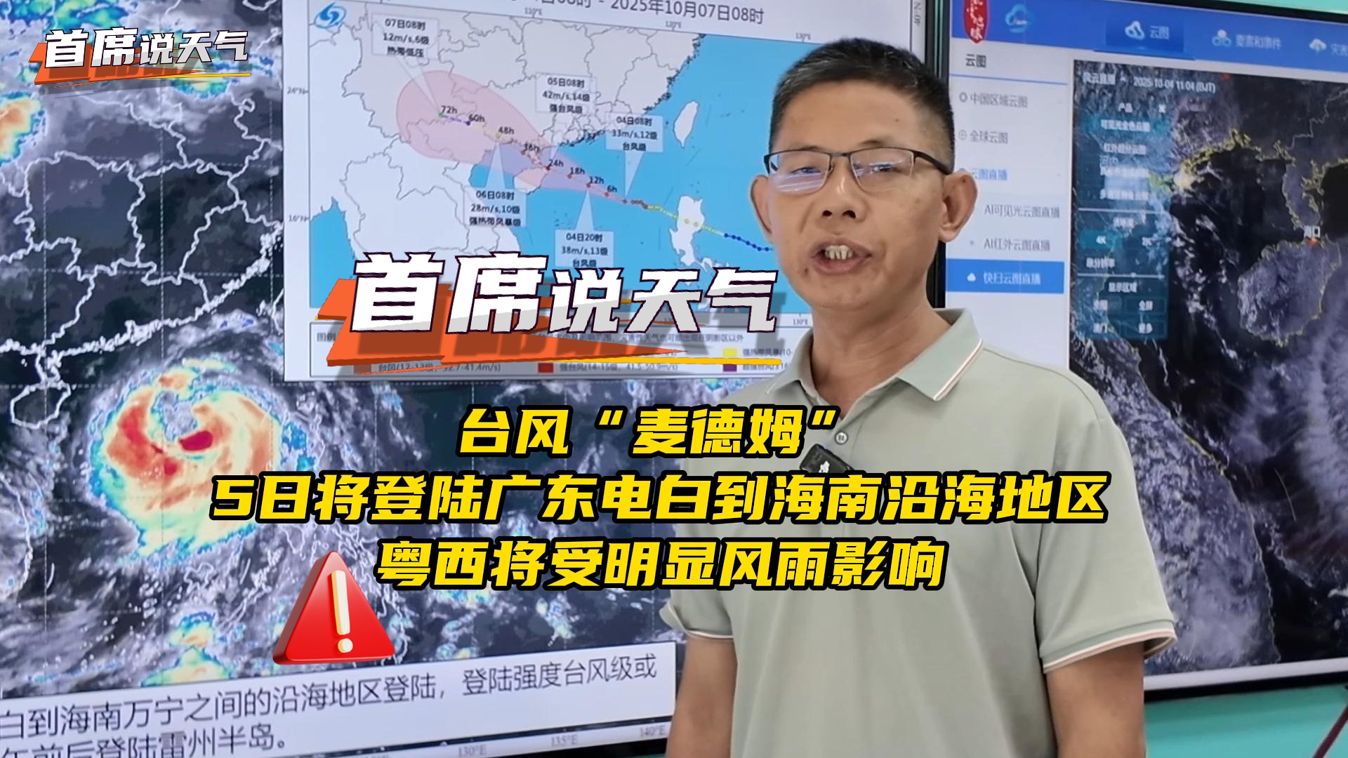 首席说天气丨台风“麦德姆”5日将登陆广东电白到海南沿海地区,粤西将受明显风雨影响