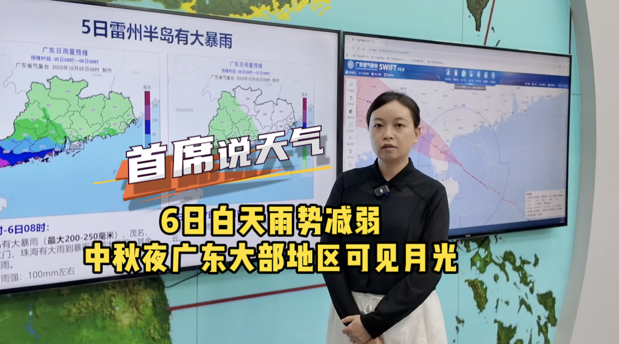 首席说天气丨6日白天雨势减弱,中秋夜广东大部地区可见月光