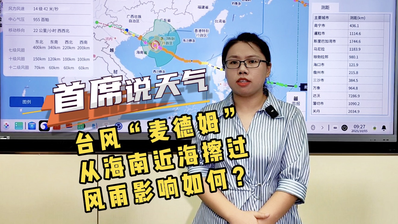首席说天气丨台风“麦德姆”从海南近海擦过,风雨影响如何?