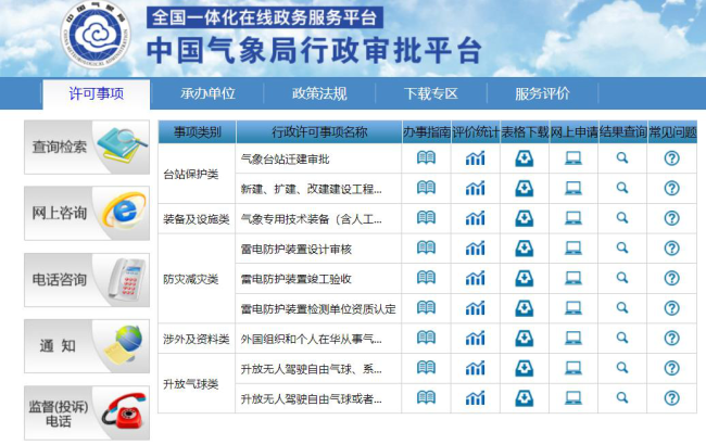 依托中国气象局全国一体化在线政务服务平台,国家、省、市、县四级全部9项气象行政许可事项实现“一网通办”和证照、印章的电子化。