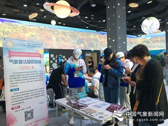 在北京世园会世界气象组织“荣誉日”活动期间,气象部门将法治宣传与科普宣传相结合,向公众介绍《中华人民共和国气象法》中关于生态环境、气候资源、气候变化等方面的相关规定,开展气象普法知识问答活动。李晨 摄影