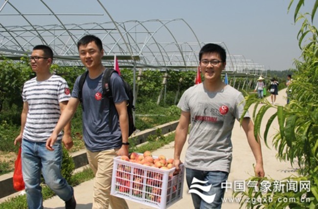 在鲜桃成熟季,安徽农网“爱农帮”工作人员经常到残疾人水果扶贫基地帮助采收。安徽农网供图