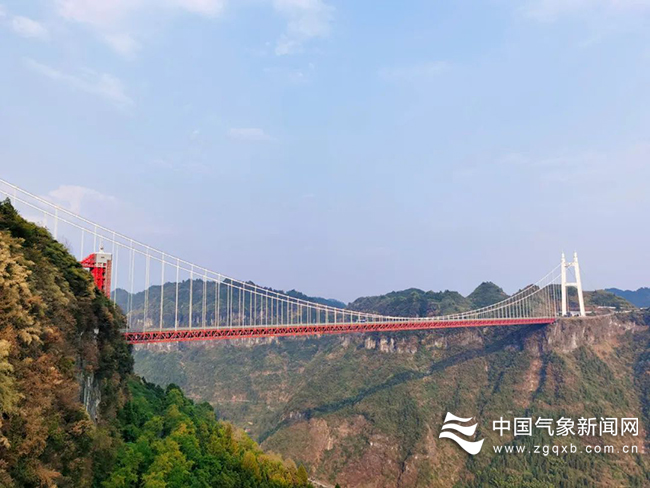 在建桥的1400多个日夜里,为保证这座特大悬索桥的顺利建成和今后的安全运行,湘西自治州气象部门为大桥全力开展气象保障服务。