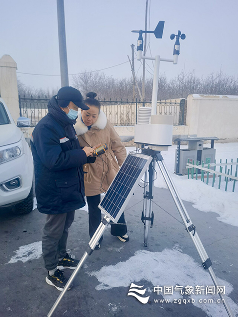 1月23日,新疆维吾尔自治区乌什县气象局业务人员在地处震中的亚曼苏柯尔克孜民族乡开展监测工作。高喜梅 摄影