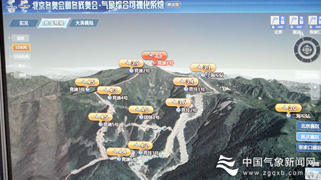 气象综合可视化系统中实时显示延庆赛区各气象站点数据。 李根 摄影