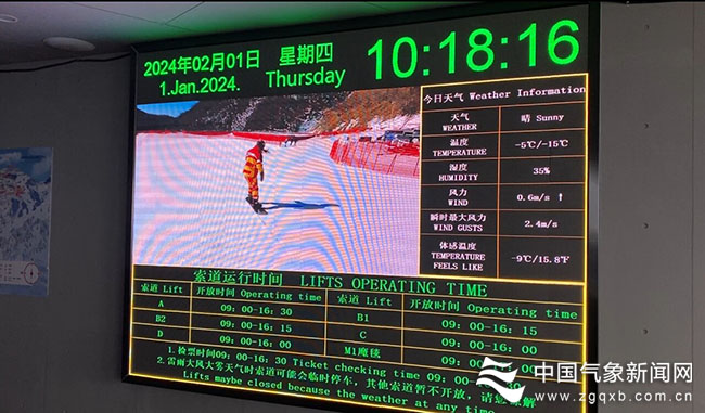 国家高山滑雪中心的信息屏上显示着气象数据。李根 摄影