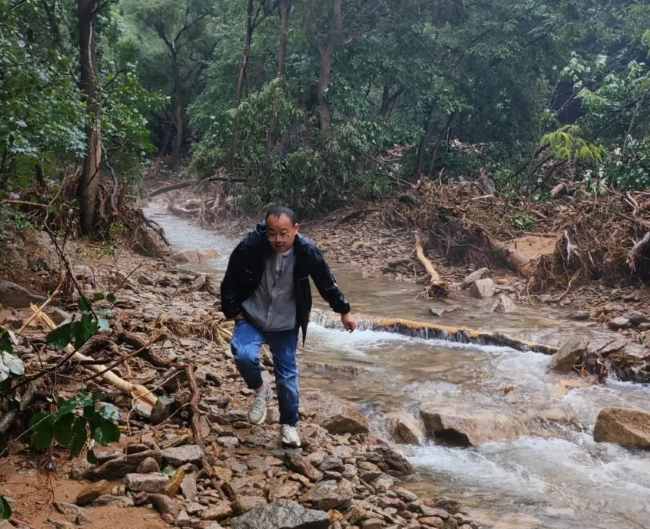 25日早9时,一接到可以上山的消息,苏贵岭和同事马上动身。上山的路坑坑洼洼,堆积着巨石和冲断的大树,部分路段积水超过70厘米,“差不多到我大腿了,有6公里左右的路车子实在开不过去。”苏贵岭一行轮番扛着130升柴油和检修设备,蹚着水上了山。25日23时,经过7小时的抢修,天气雷达正常开机,数据传输恢复正常。