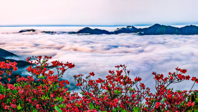 阳明山国家森林公园为国家4A级旅游景区,春有百花、冬有雾凇,全年可赏云海奇观。这里更是被上海大世界基尼斯纪录收录为我国面积最大的野生杜鹃花基地,有着“天下第一杜鹃红”的美誉。每年4月中旬起,阳明山杜鹃就进入了盛开季,这一盛景会一直持续至5月中旬。眼下,漫山遍野的杜鹃正竞相绽放,游客们纷纷拿出相机打卡拍照。