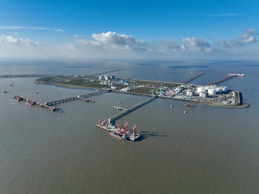 除了每月“迎接”全球最大的LNG运输船舶,还有少则几艘、多则十艘稍小的船舶。目前,阳光岛已累计接卸来自26个国家和地区的LNG超6000万吨,是长三角地区规模最大的清洁能源“输气”站。