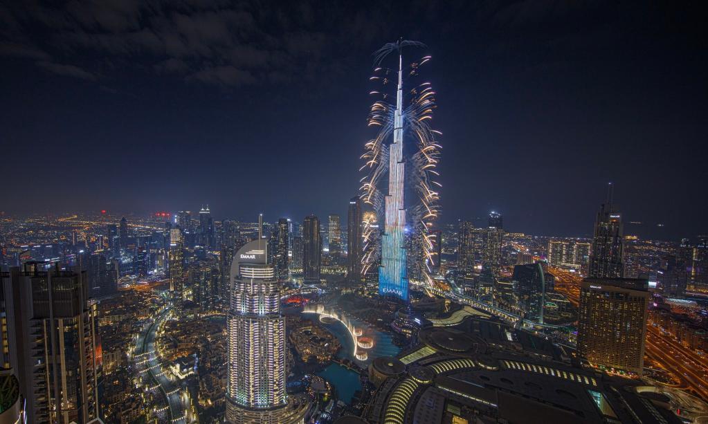 2024年1月1日凌晨,阿联酋迪拜的哈利法塔举办跨年烟火秀。新华社发