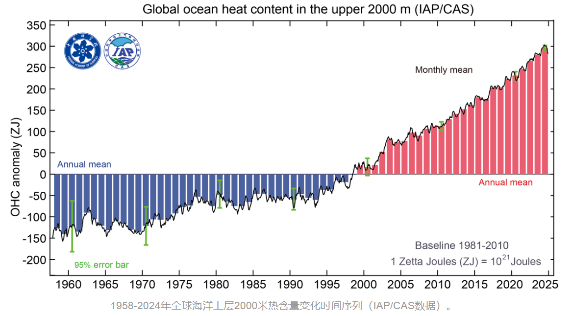 1958-2024年全球海洋上层2000米热含量变化时间序列(IAP/CAS数据)。中国科学院大气物理研究所供图