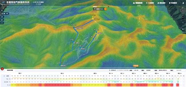 冬奥现场气象服务系统中的延庆赛区“百米级”网格风预报产品。北京城市气象研究院 供图
