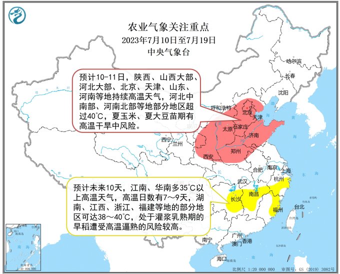 近日,农业农村部、水利部、应急管理部、中国气象局联合下发通知,要求各地坚持问题导向,分区分类指导,细化实化措施。据悉,气象与农业农村等部门强化部门沟通会商,密切关注高温、病虫害等发展动态,及时发布预报预警信息。7月9日,农业农村部和中国气象局联合发布早稻高温热害风险预警。