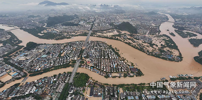 6月12日至19日,桂林出现持续性大范围强降雨天气,强降雨落区集中在湘桂铁路沿线及漓江上游地区,永福、兴安、灵川三县反复出现特大暴雨,7个乡镇累计雨量超过700毫米,最大为兴安县溶江镇,达945.5毫米。持续性强降水导致漓江水位超警,洪水导致桂林城区出现严重内涝,部分道路受阻中断。