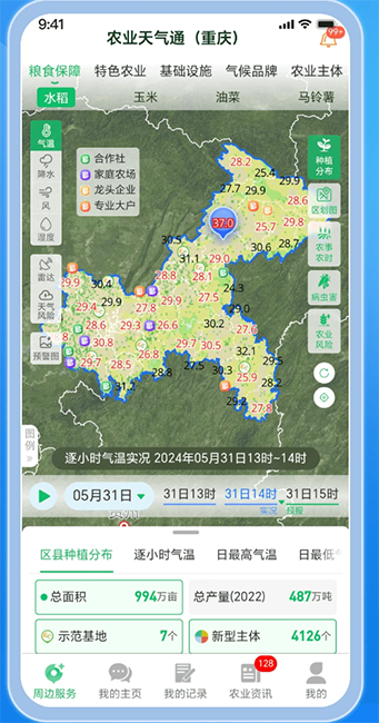 “测亩易”APP面向全国农机作业相关人员,可提供精细化机收作业气象灾害风险服务。除了这一APP外,通过与农业农村部农业机械化总站开展合作,中国气象局公共气象服务中心还将预警信息、机收适宜度、高温及降水预报等气象服务产品全面接入今年新上线的全国农机作业指挥调度平台。通过农机作业小程序,预警信息和气象实况预报服务同样可直达农机手。
