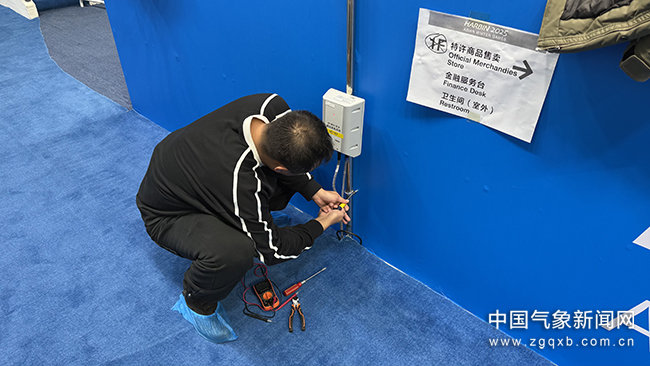 冰壶馆设备维护人员徐晓晨给小型自动站更换电池。刘栋 供图