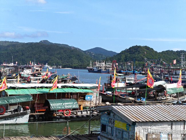 广东省汕尾市气象局密切监测“杨柳”动态,加强会商研判,切实做好预报预测预警,并于8月13日7时,将台风白色预警信号升级为蓝色。图为汕尾中山渡口渔港停满安全回港避风的渔船 陈景鹏 摄影