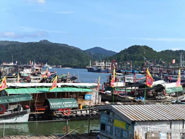 8月13日,根据气象部门发布的预警信息,广东省汕尾市的渔船及时回港避风。陈景鹏 摄影