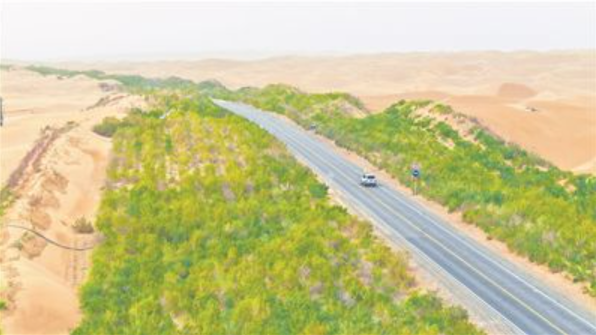 “生态防护林每年能吸收二氧化碳约2万吨,负碳部分可中和过往车辆碳排放。塔里木沙漠公路防护林生态工程的建设为我国荒漠治理和沙漠公路运行维护提供了‘塔里木方案’。”塔里木油田塔中采油气管理区经理助理、地面工程部主任、党支部副书记陶建说,多年来,在管理区的精心养护下,4.7万亩防护林植被的平均高度已超过2米,百余种鸟类在这条“绿色通道”上迁移、栖息,有力地促进了当地生态保护和区域经济社会发展。