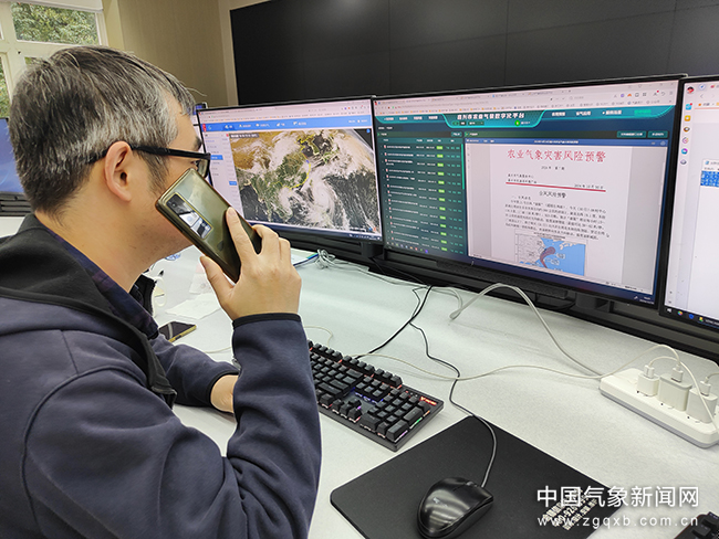 10月30日,浙江省嘉兴市气象服务中心与市农业农村局农技中心进行电话专题会商,分析稻田、果园、菜地积涝和农业设施大风等灾害风险,并面向全市涉农企业、粮食大户和农业合作社联合发布农业气象灾害风险预警。张珊珊摄影
