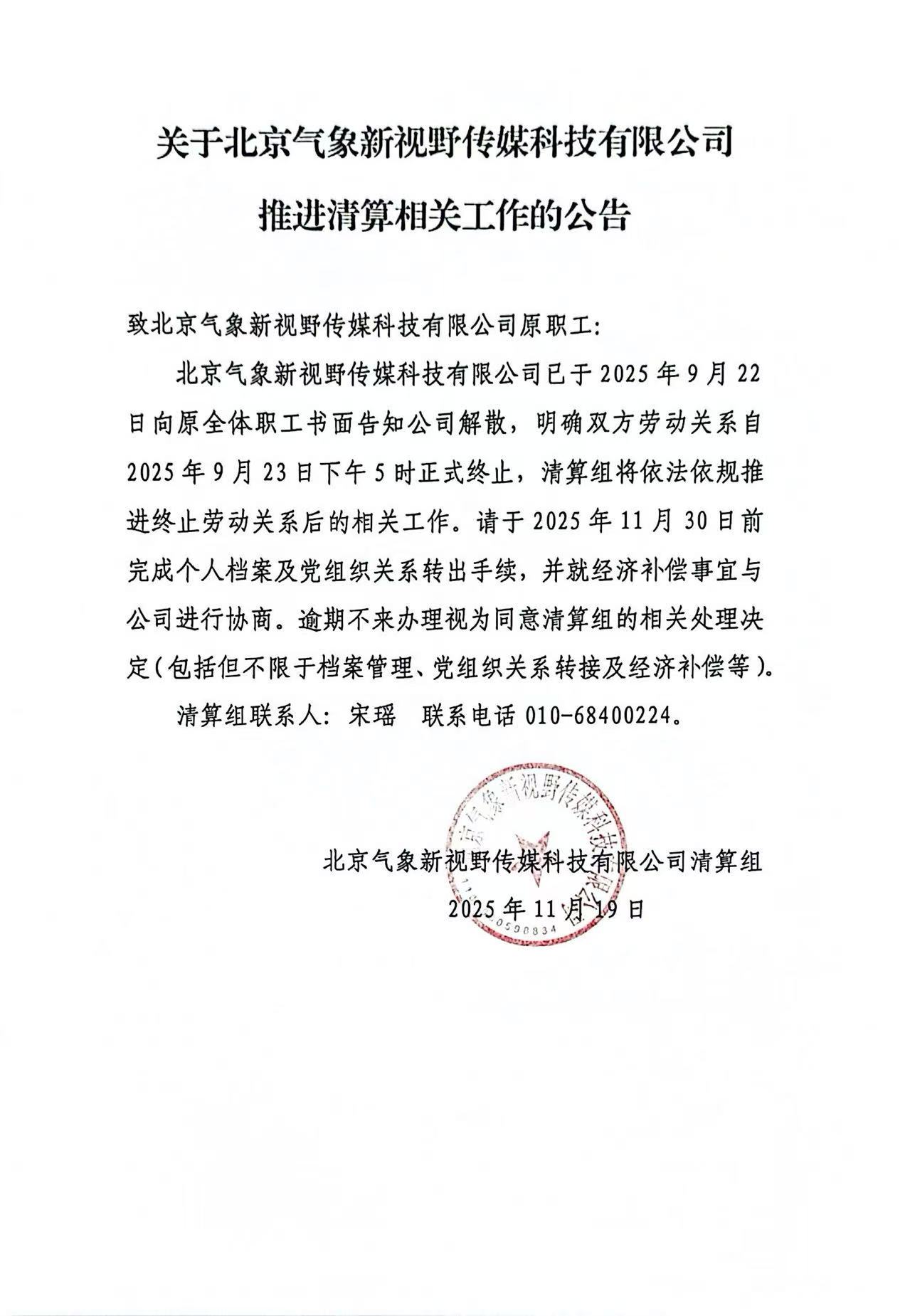 关于北京新视野传媒科技有限公司推进清算相关工作的公告