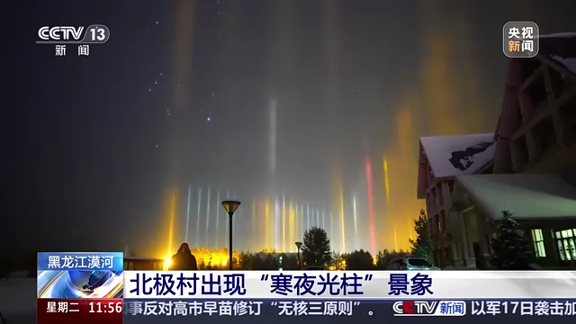 出现在漠河北极村的“寒夜光柱” 截图来自央视新闻