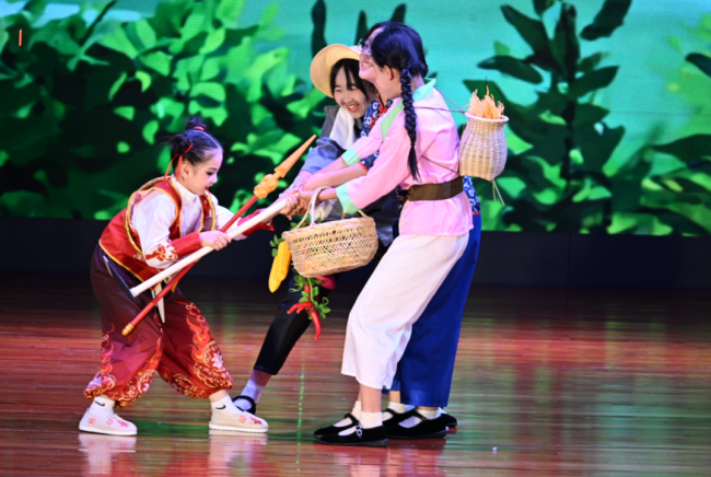 在广西柳州文韬小学的科普剧《龙舟水避险记》中,故事始于无意中听到的一段“密谋”:龙王们的斗法,导致极端暴雨天气“龙舟水”频现。对此,生性急躁、脚踏风火轮的哪吒,成了穿梭街巷村镇、与暴雨争分夺秒的“应急先锋”;而掌管风雨的敖丙,则化身“首席预报员”。两人携手开启了一场与时间赛跑的防灾减灾行动……
