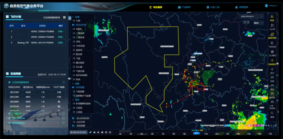 当又一批无人机从自贡机场腾空而起,气象雷达的回波在屏幕上轻轻跳动。在这里,每组数据都在诉说:给翅膀装上"气象导航",低空经济才能飞得稳、飞得远。