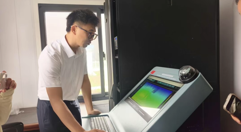 自贡市气象局探测中心副主任吕用洋展示地基遥感垂直观测系统 摄影:马超