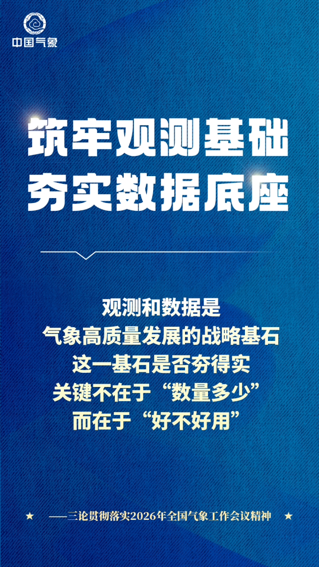 基础不牢,地动山摇;底座夯实,方能行稳致远。坚持提质增效、强化观测和数据基础支撑作用,本质上就是把气象事业发展的“根”和“本”牢牢抓在手中。只有如此,气象才能在新一轮高质量发展中持续发挥先导性、基础性作用,为“十五五”良好开局提供更加坚实可靠的支撑。