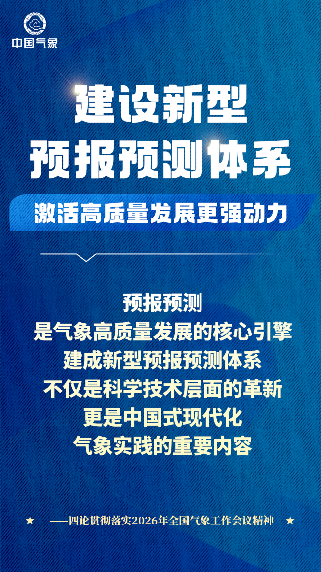 预报预测是气象高质量发展的核心引擎。2026年全国气象工作会议明确提出,坚持数智发展,加快建设新型预报预测体系。