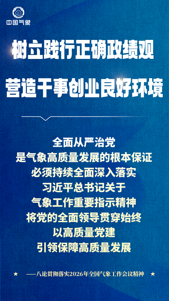 2026年是“十五五”开局之年,也是《气象高质量发展纲要(2022—2035年)》第二阶段起步的关键时期,任务艰巨、意义非凡。全国气象工作会议明确提出“坚持党建引领,营造风清气正政治生态”,树立和践行正确政绩观,以实际行动贯彻落实好党中央重大决策部署,确保“十五五”良好开局。
