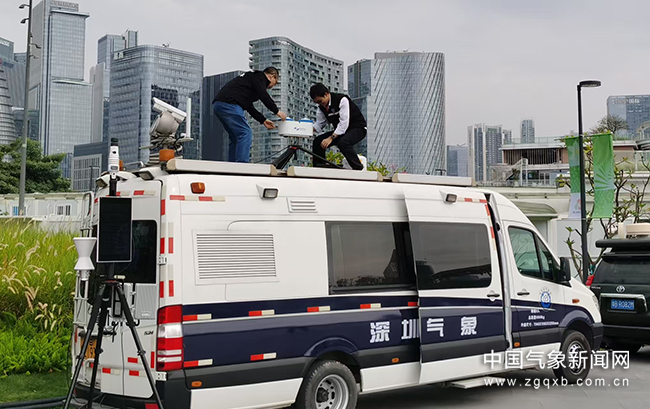 11月18日,气象工作者在闭幕式场馆区域架设全天空实景观测仪器,并加装一部低空测风雷达。 深圳市气象局供图
