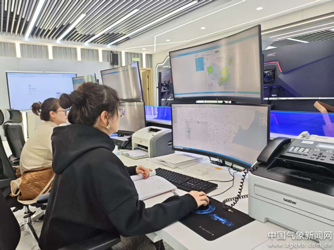 工作人员通过“吉天”业务平台制作预报产品 吉林省气象局供图