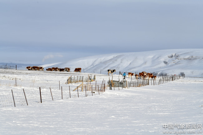 12月10日,内蒙古呼伦贝尔市陈巴尔虎旗牧区出现厚厚积雪。李孝荣 摄影