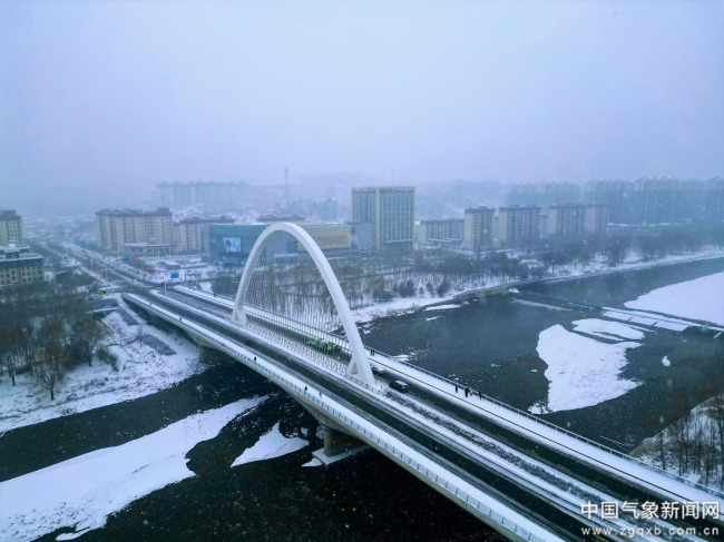 12月12日,河北省保定市阜平县阜盛大桥被降雪覆盖。韩非 摄影