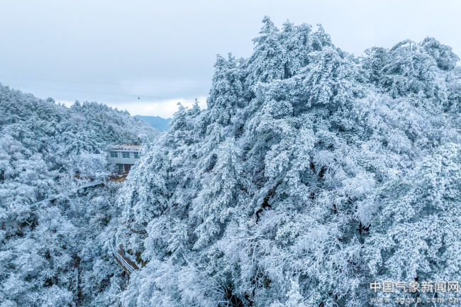 河南省尧山风景区迎来2025年入冬以来第一场降雪,山丛、松枝“结满”了毛茸茸的雪凇,披银戴玉,宛如仙境。王振东 摄影