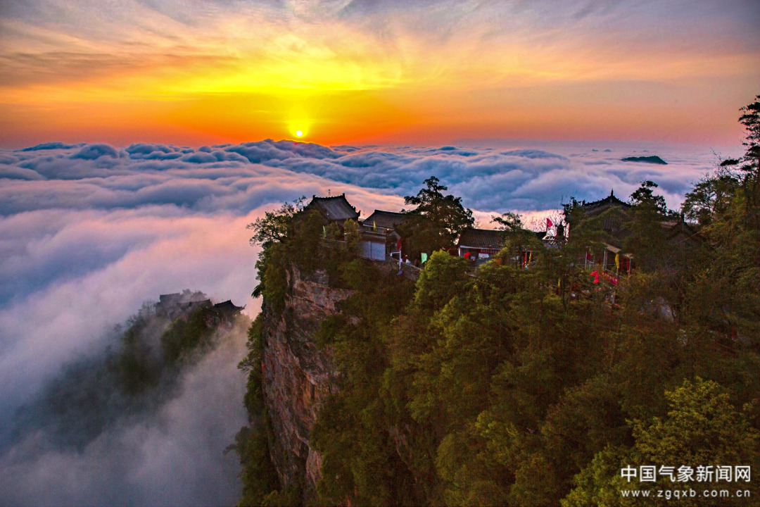 东方初升的朝阳,携万丈霞光穿透云层。鸡峰山巅云海流转,呈现金红的秀美景色。愿你我新岁遇晴暖,步步踏霞光,事事皆圆满。张红霞 摄影