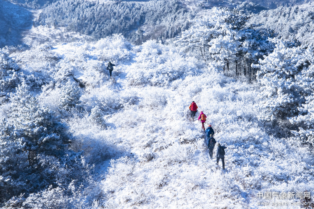 老顶山银装素裹,雾凇凝霜、积雪覆枝,一队徒步者穿行于这片皓白天地,这风雪中的笃定前行,恰是毅力的见证。愿你我如这般,不惧霜雪,步履铿锵。张寅 摄影
