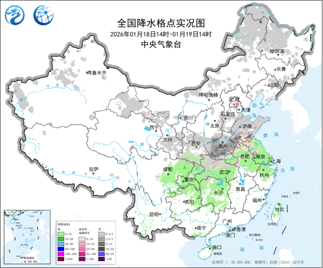 1月18日14时至1月19日14时全国降水格点实况图