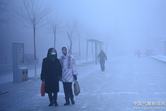 2022年12月15日,内蒙古根河气温下降至零下40℃以下,市区出现冰雾现象。图/文 李庭轩