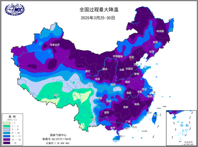 2025年共有30次冷空气过程影响我国,其中9次为寒潮(较常年偏多3.7次)。2025年3月出现两轮全国型寒潮天气,冷暖波动大,25日至30日发生年度最强寒潮,降温幅度大、持续时间长、沙尘雨雪等多种灾害性天气交织。江南及山西中部等地最大降温幅度超过20℃,内蒙古西部出现沙尘暴,东北地区及陕西中部、山西南部等地出现降雪(雨)。2025年10月18日至20日,受冷空气影响,东北地区南部、华北东部等地降温8℃至10℃,导致这些地区“秋短冬早”。