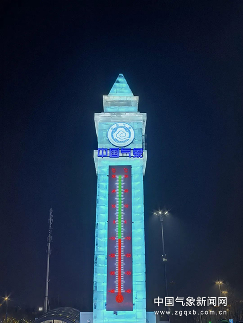 冰雪大世界入口处的冰雪景观温度计 叶奕宏 摄影