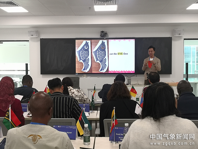 印尼访问学者在国际培训班中教其他学员剪纸