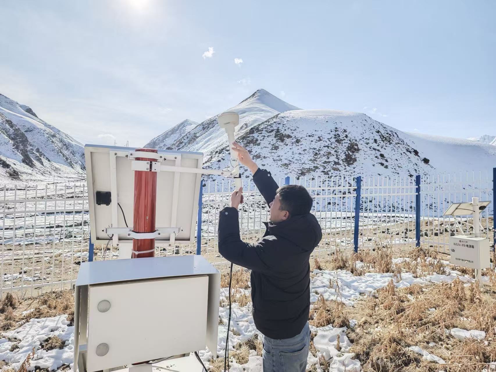 塔什库尔干县气象保障人员在震区对气象设备进行排查 张誉腾摄影